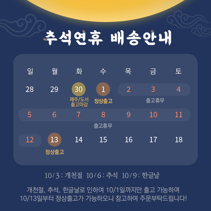 • 택배배송의 경우, 주말 및 공휴일 전일 및 당일에는 상품 발송이 어려울 수 있습니다.