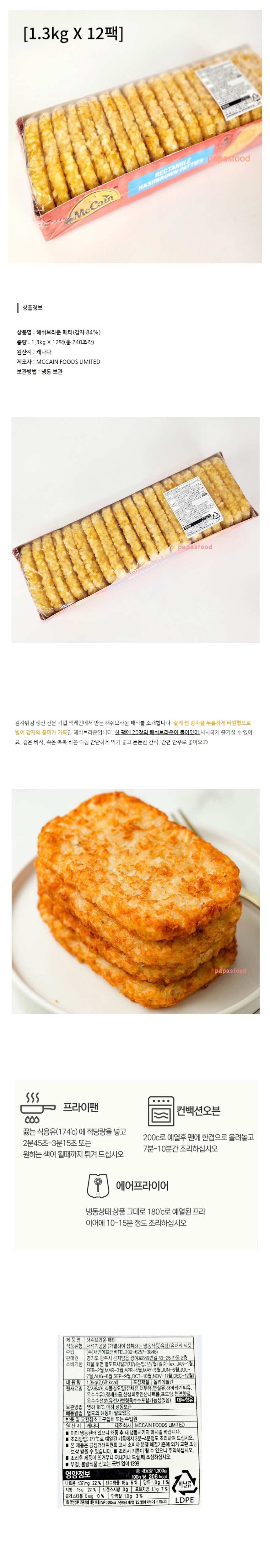 ![맥케인 해시브라운 감자패티 해쉬브라운 1박스[1.3kgX12팩] 이미지](https://content.foodspring.co.kr/vendor/622/images/101_1958065573_r.jpg?f=webp&s=876x876&t=inside)