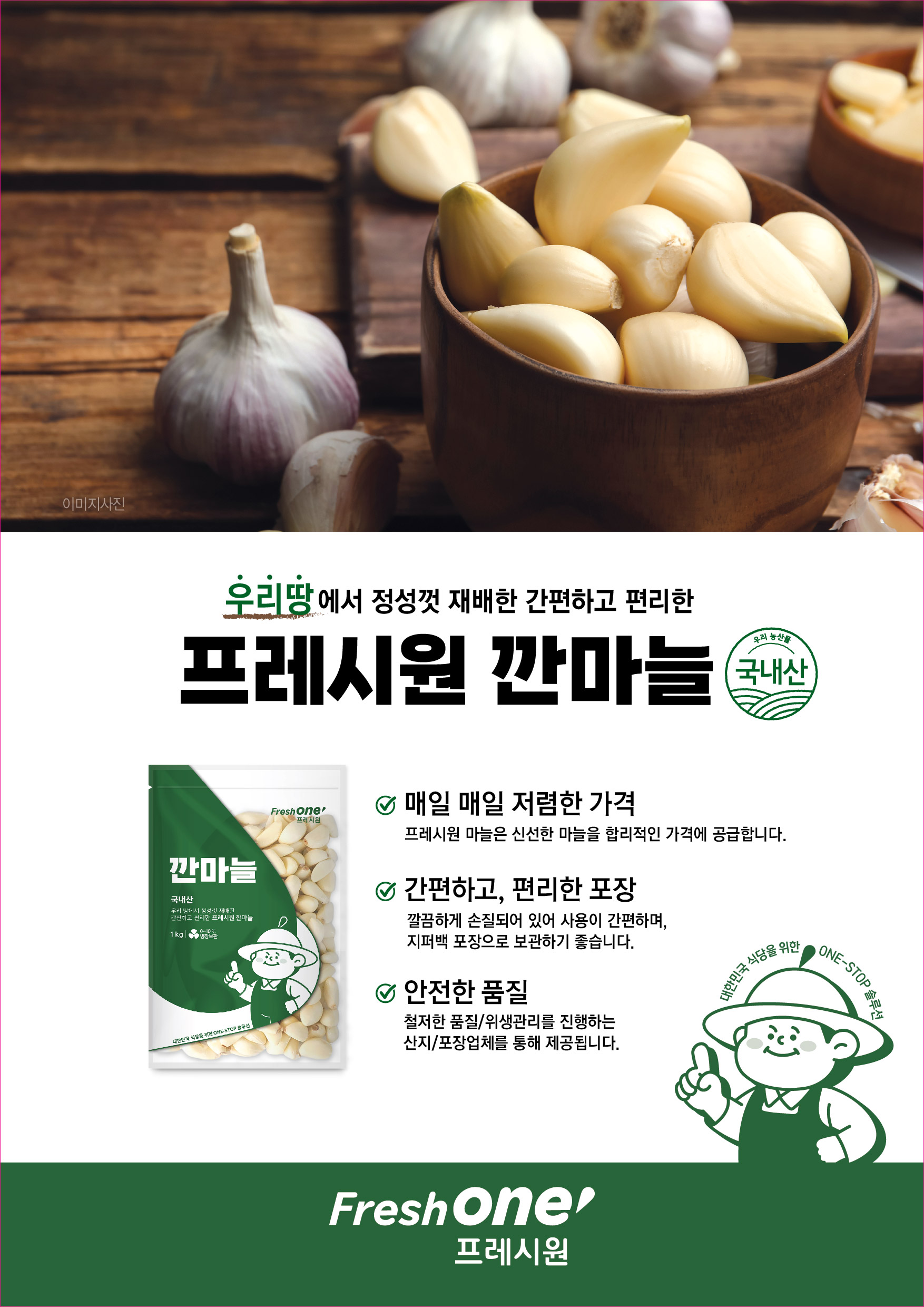 ★매일시장특가★ 프레시원 깐마늘(중 1Kg/EA) 마늘 초특가 매일시장특가 이미지