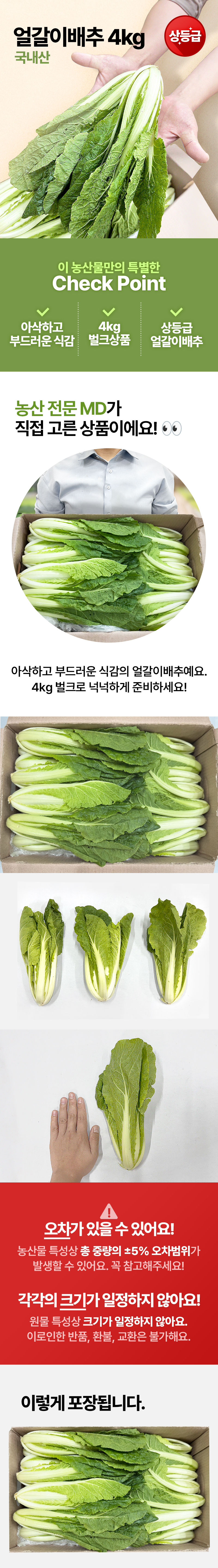 ★매일시장특가★ 얼갈이배추(상 4Kg/BOX) 초특가 채소 야채 얼갈이