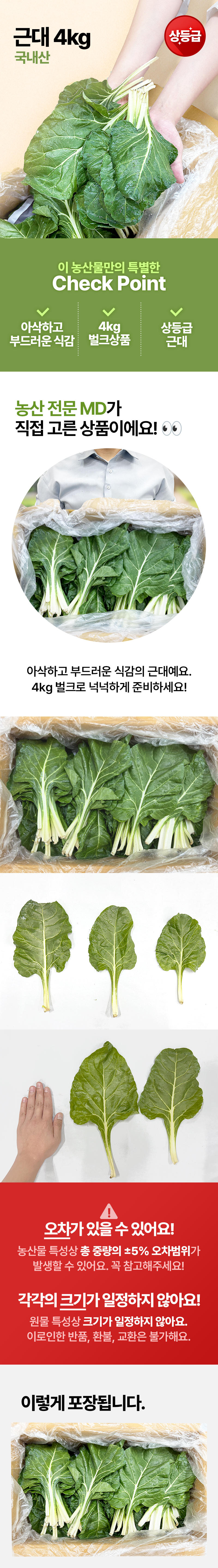 ★매일시장특가★ 근대(상 4Kg/BOX) 초특가 채소 야채