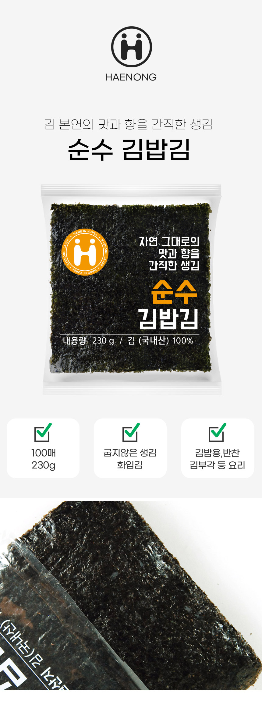 판매단위 : 1봉, 230g (100장)