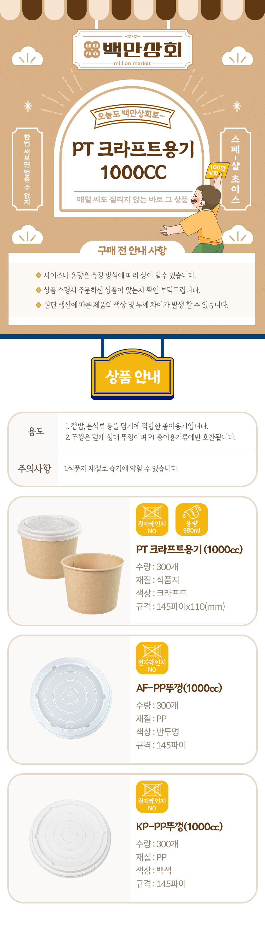 [샘플] PT 종이용기 내추럴크라프트(1000cc) 1개 이미지