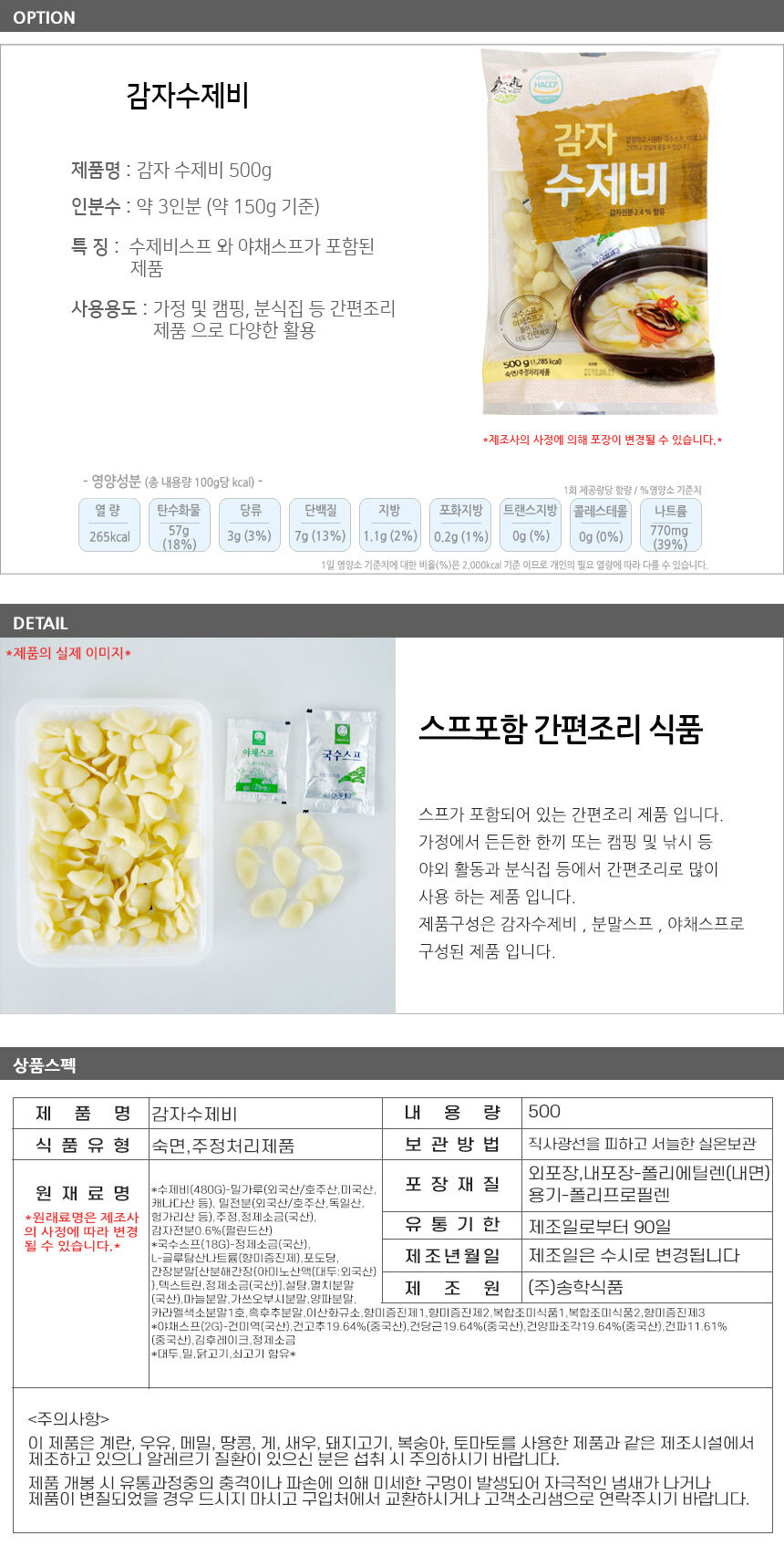 떡, 떡볶이, 냉면, 생면, 메밀, 수제비 등의 식자재 상품의 경우