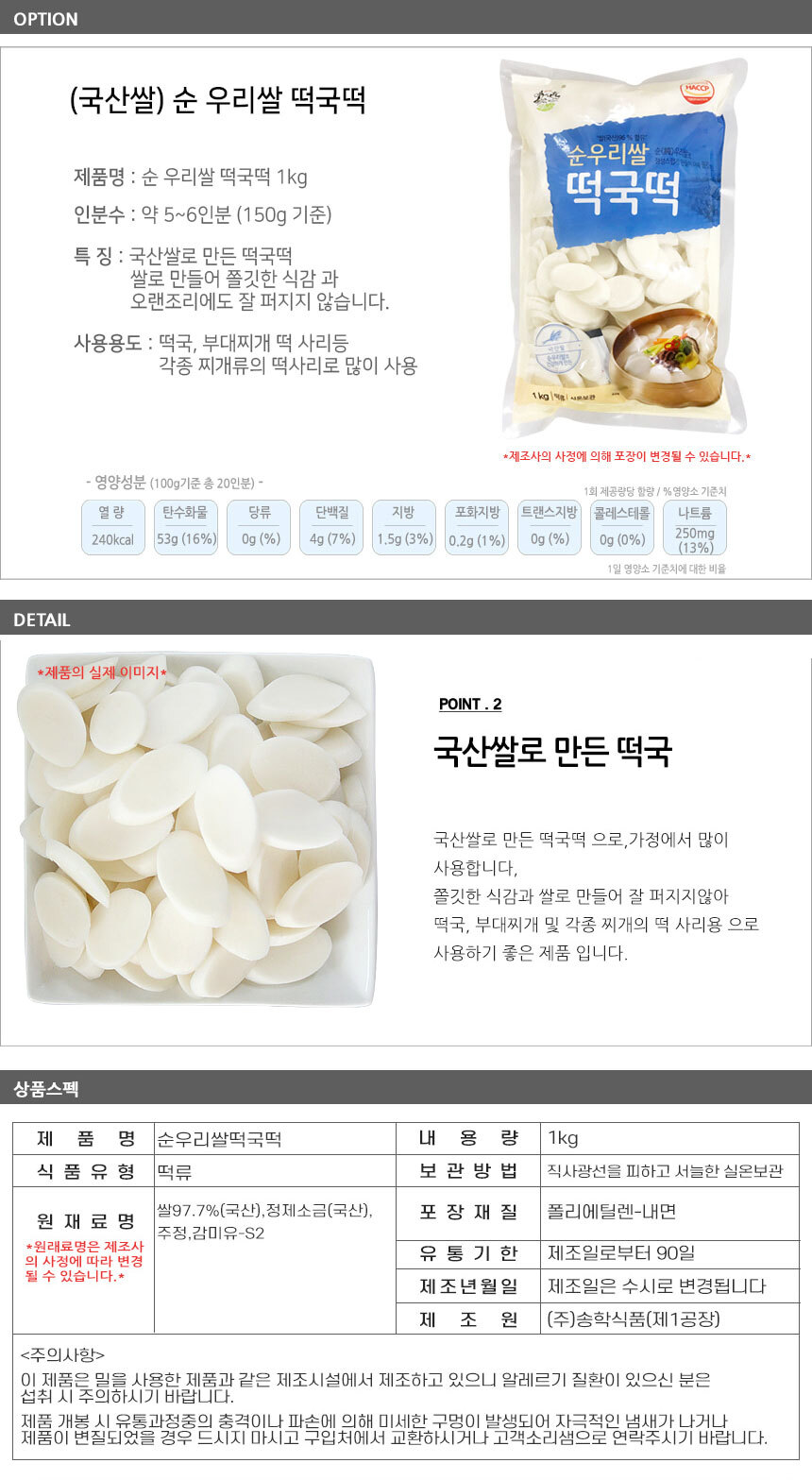※ 떡볶이, 떡국, 소면, 냉면 등 식자재용 상품의 경우
