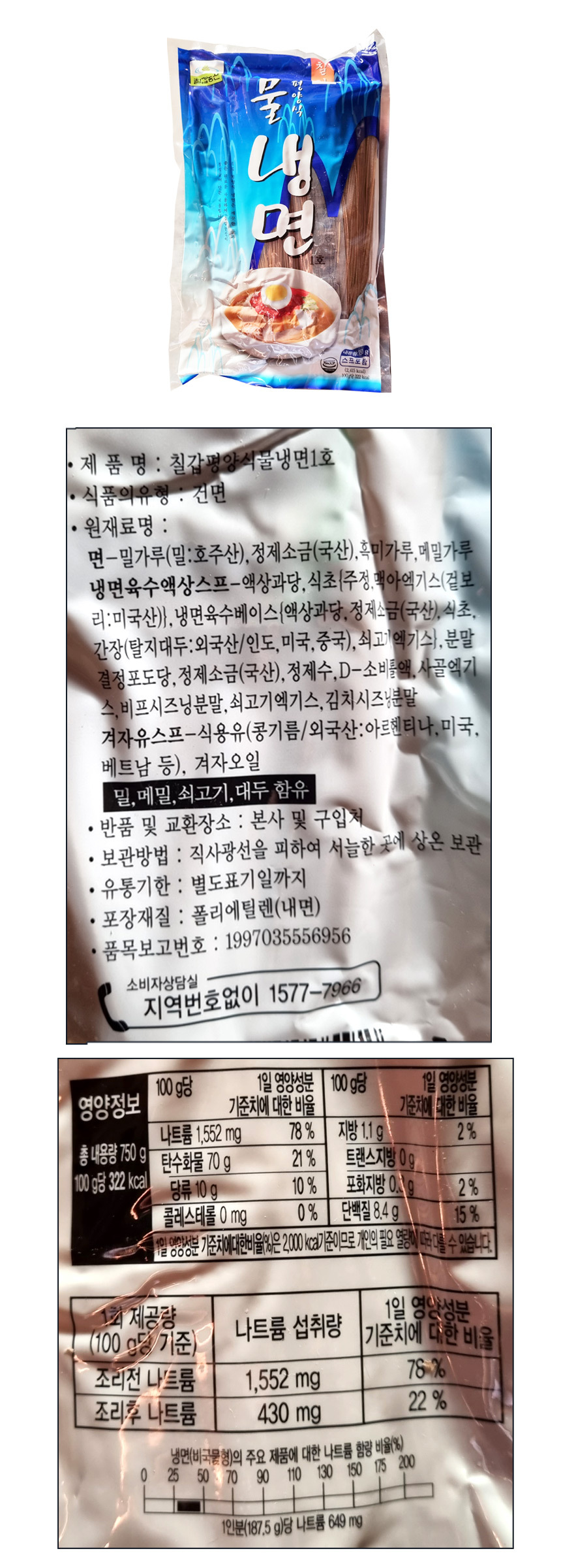 떡, 떡볶이, 냉면, 생면, 메밀, 수제비 등의 식자재 상품의 경우
