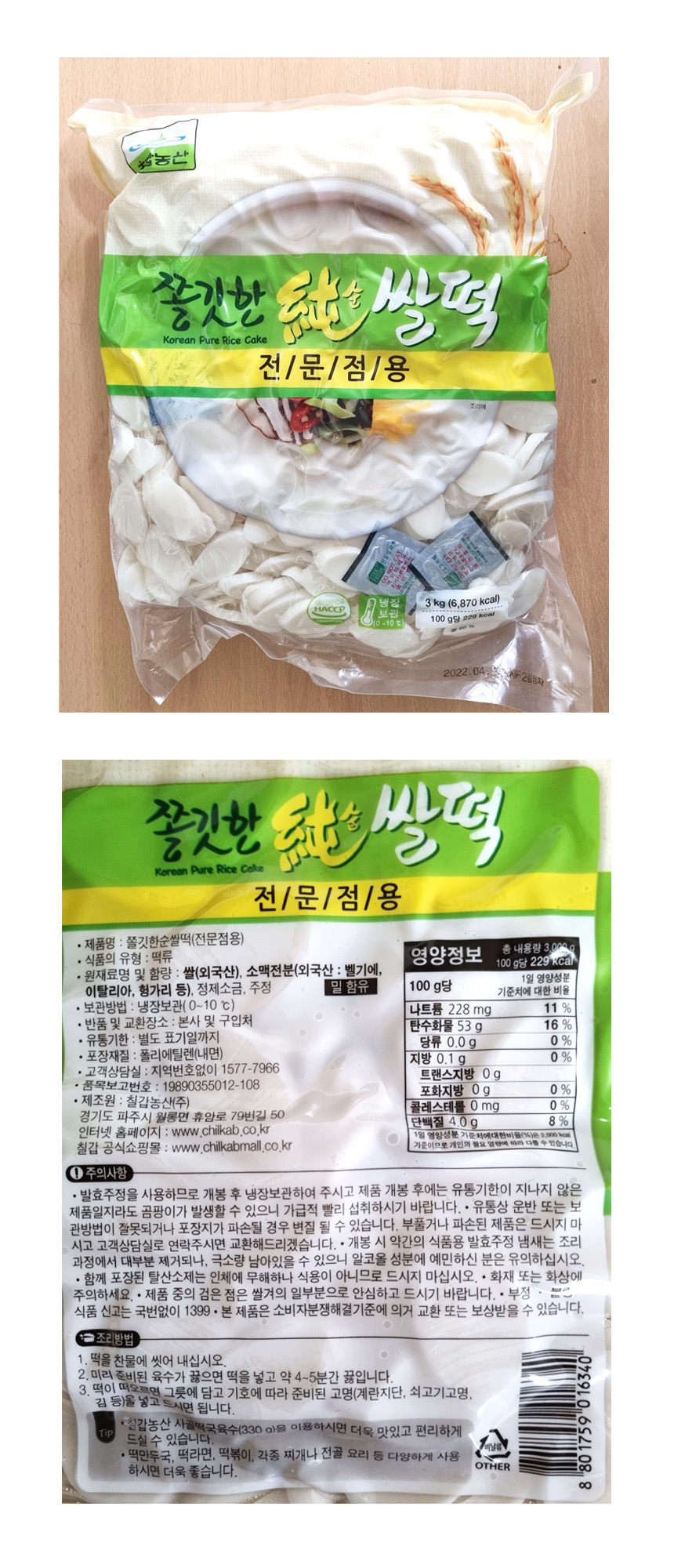 ※ 떡볶이, 떡국, 소면, 냉면 등 식자재용 상품의 경우