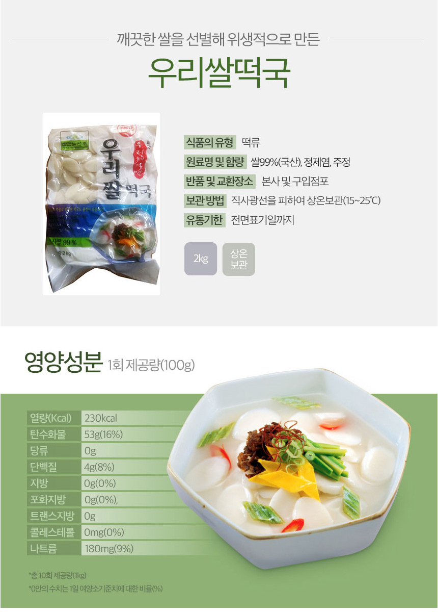 ※ 떡볶이, 떡국, 소면, 냉면 등 식자재용 상품의 경우