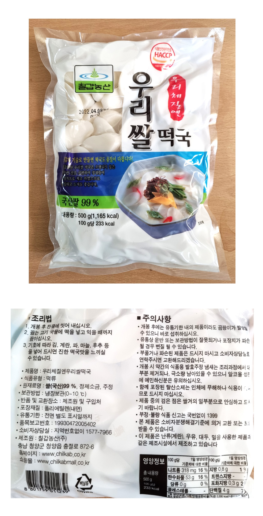 ※ 떡볶이, 떡국, 소면, 냉면 등 식자재용 상품의 경우