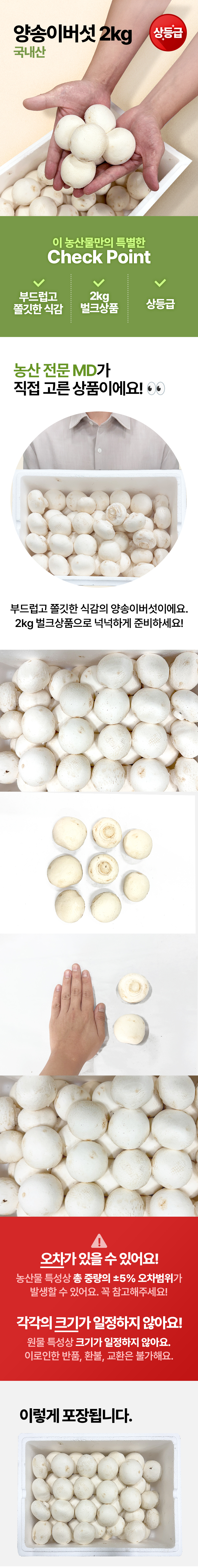 ★매일시장특가★ 양송이버섯(상 2Kg/BOX) 초특가 채소 야채 양송이 버섯