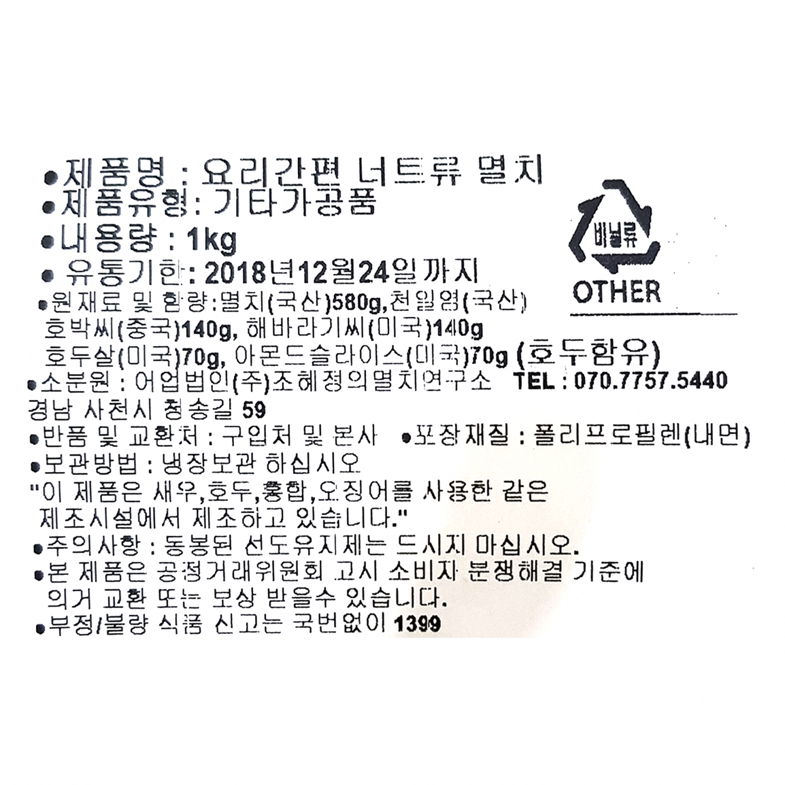 ♥수산특가♥ 간편멸치(너트류혼합 볶음용 1Kg/EA)