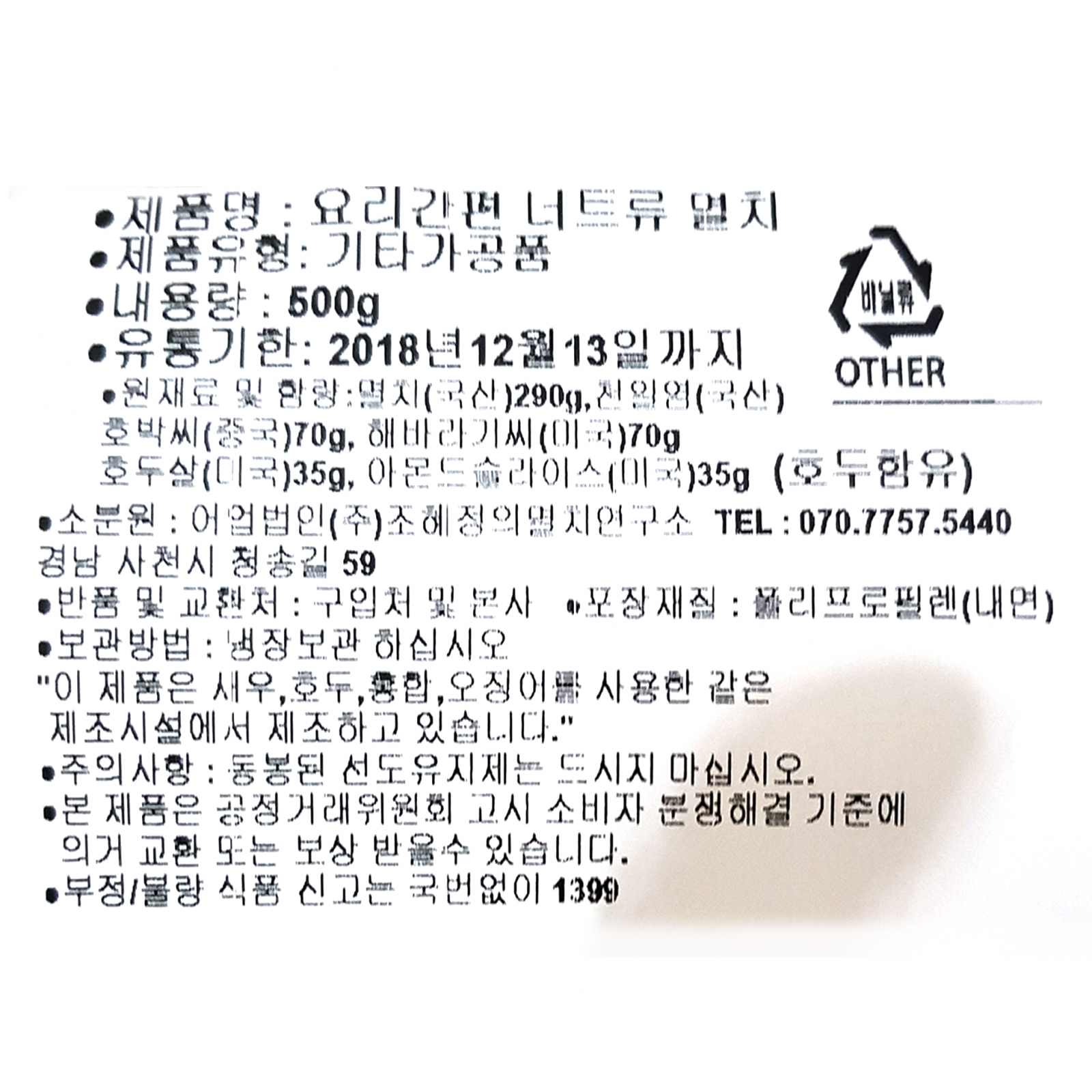 본 제품은 제품입고일별 소비기한 또는 품질유지기한이 상이하므로, 필요시 고객센터로 문의하여 주십시오. 제조일로부터 365일 까지