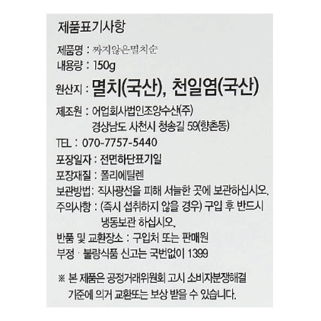 ♥수산특가♥ 멸치(저염멸치 볶음용 150g/EA) 이미지
