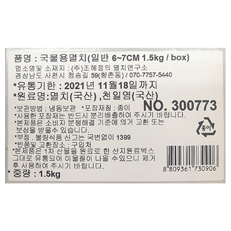 ♥수산특가♥ 국물용멸치(일반_6~7cm 1.5Kg/BOX)