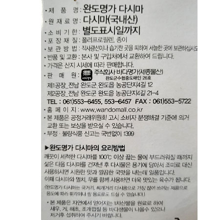 ♥수산특가♥ 완도명가 건다시마(전남도지사인증_품질인증 500g/EA)
