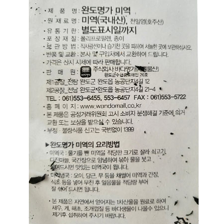 ♥수산특가♥ 완도명가 건미역(전남도지사인증 500g/EA)