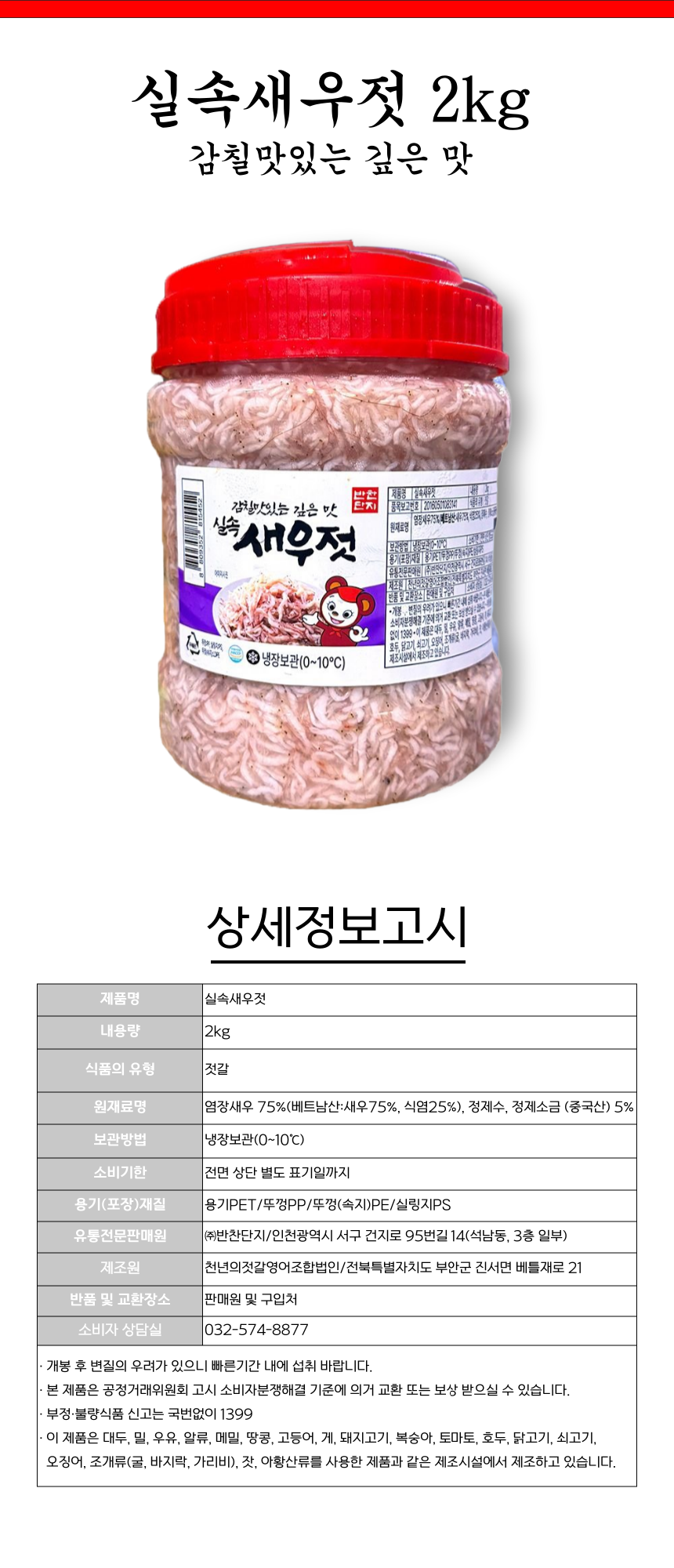 [교차출고] 새우젓 2kg 수입산 오젓 육젓 추젓 젓갈 김장용