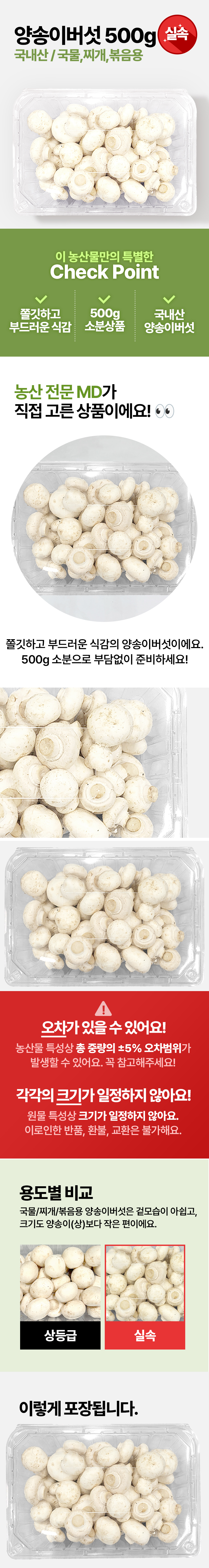 ★매일시장특가★ 양송이버섯(실속 500g/EA) 초특가 채소 야채 양송이 버섯