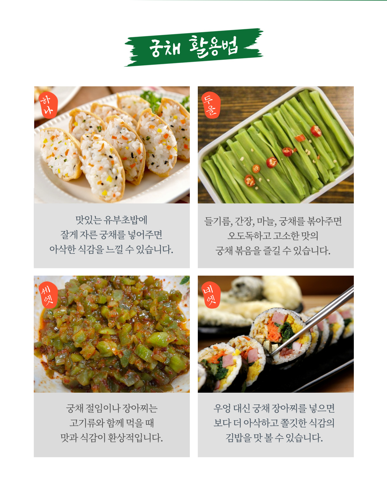 *그외 가정내 기호에 따라 다양한 활용법이 더 많은 궁채: