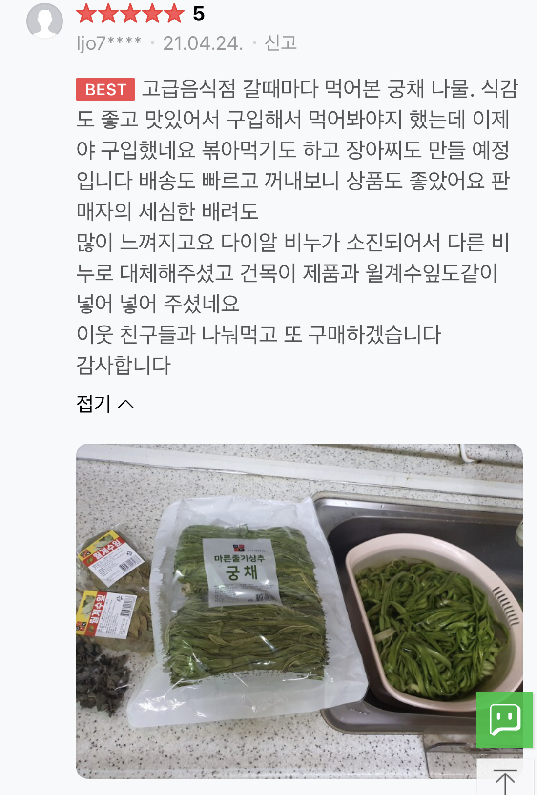 ![[맛집 대용량 추천] 벌크 궁채나물 10kg 특A급 궁채 줄기상추 궁채장아찌 궁채나물볶음 나물 뚱채나물 건궁채 궁체 뚱채 상추대나물 야마구라게 반찬 한정식 이미지](https://content.foodspring.co.kr/vendor/167/images/58_3002259241_r.jpg?f=webp&s=876x876&t=inside)