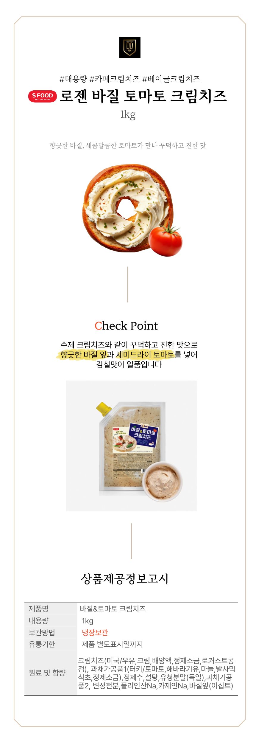 ![[단품] 로젠치즈 바질토마토 크림치즈 1kg 냉장 베이글용 베이커리 이미지](https://content.foodspring.co.kr/vendor/1790/images/87_5136602395_r.jpg?f=webp&s=876x876&t=inside)