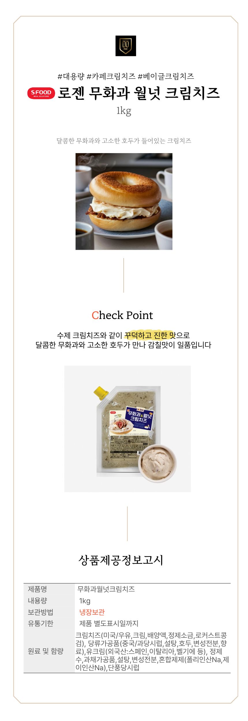 로젠치즈 무화과월넛 크림치즈 1kg 냉장 베이글용 베이커리