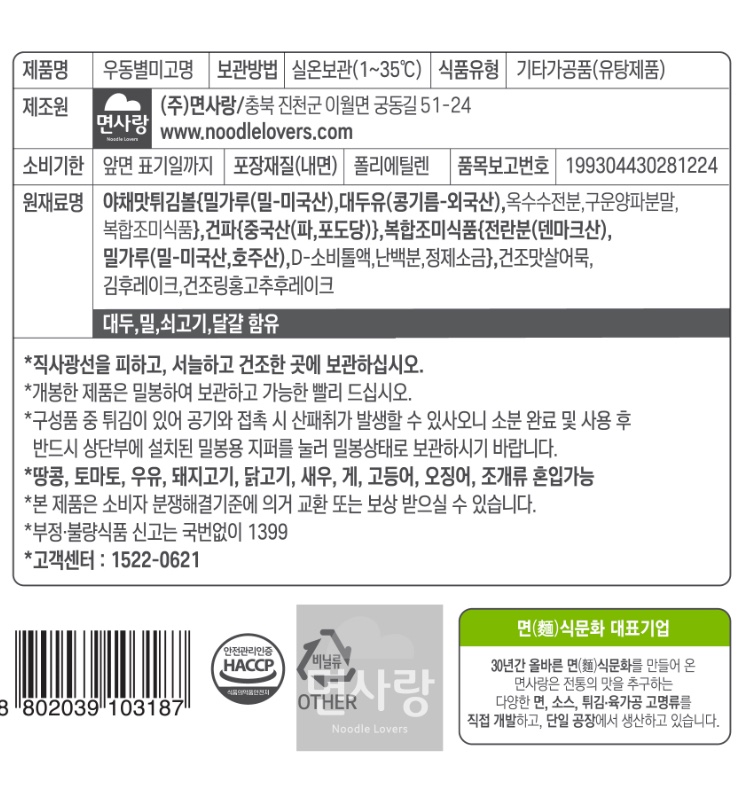 면사랑 야채맛 우동별미고명 500g 건더기스프 이미지