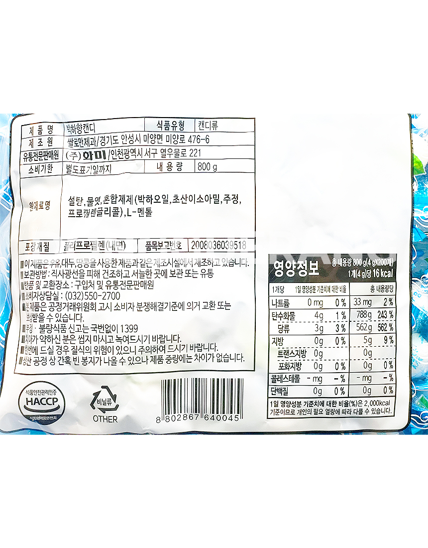 화미 박하사탕(개별포장) 800g