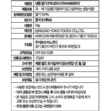 냉동딸기(A급 무가당 1Kg/EA)