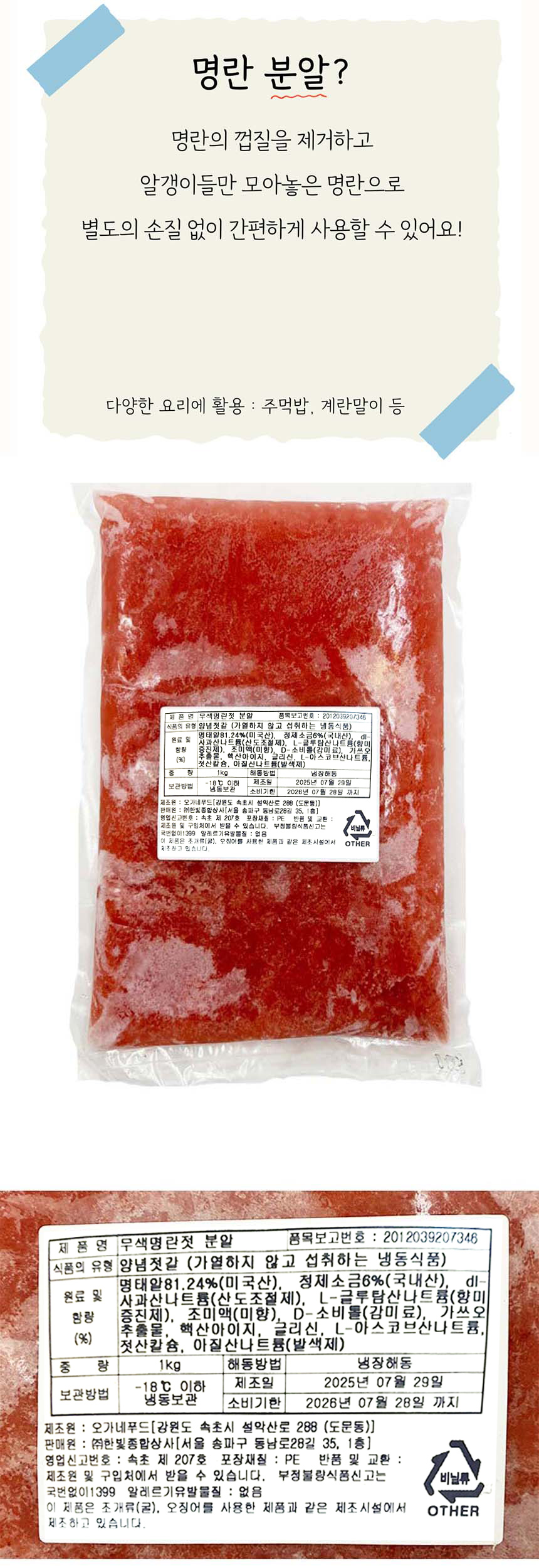 명란 파지 1kg 무색소 냉동 명란젓 파지 분란 분알 젓갈