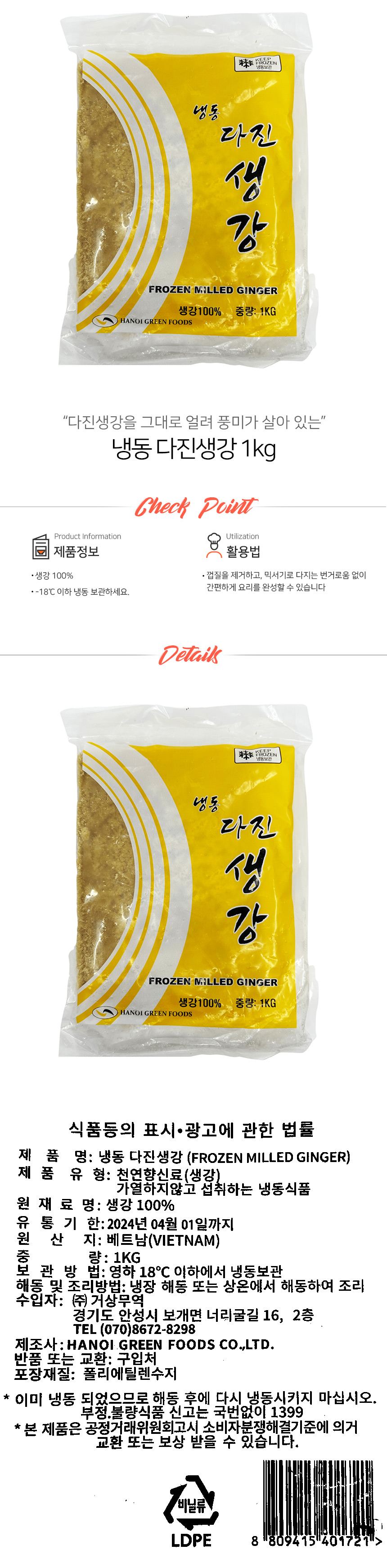 냉동야채 다진생강 1kg