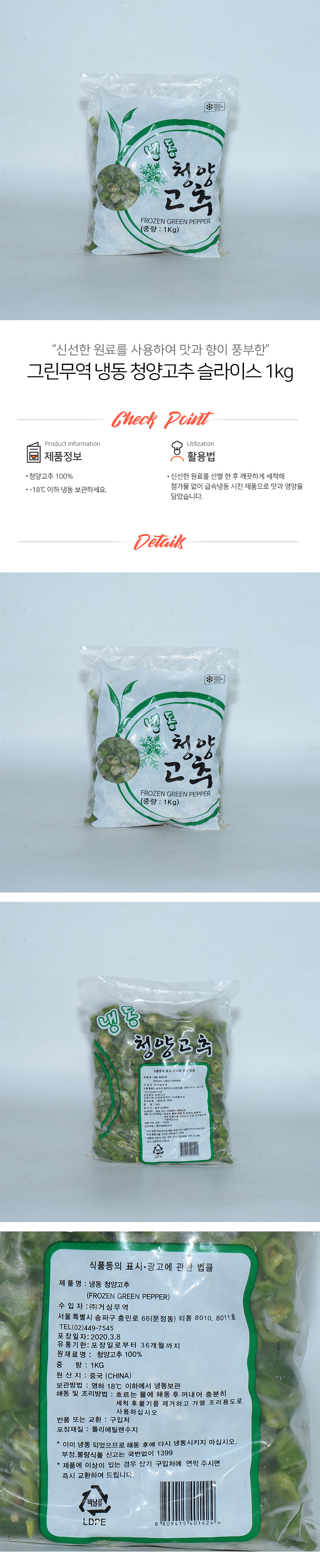 냉동야채 청양고추 슬라이스 1kg 이미지