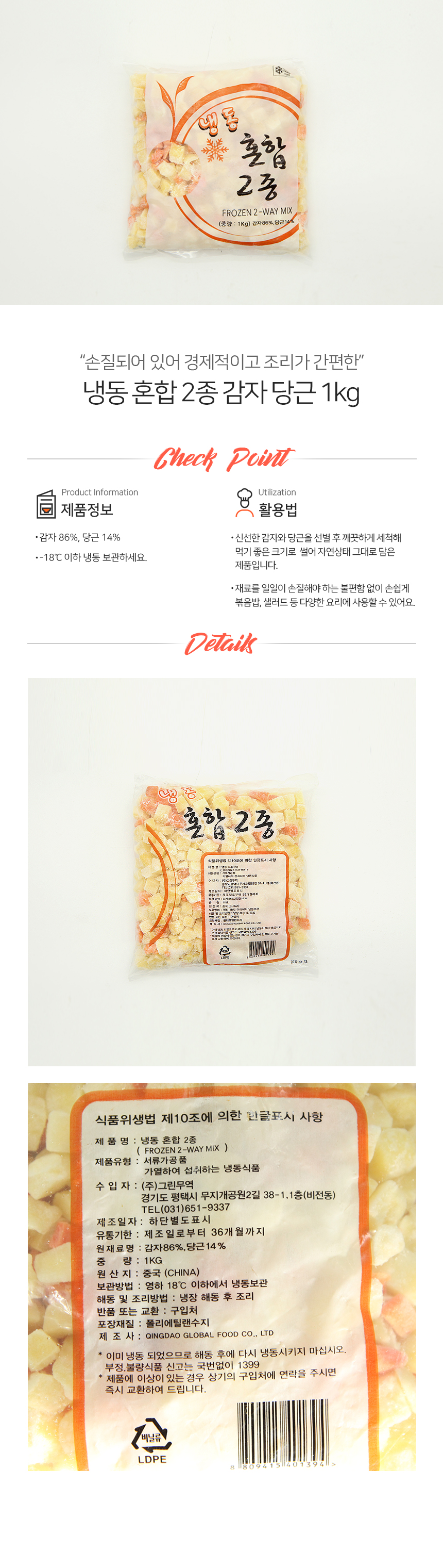 냉동야채 카레짜장용 2종 야채믹스 1kg