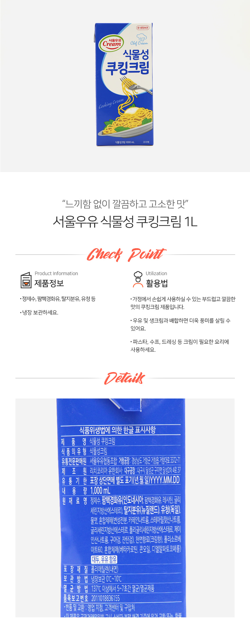 서울 냉장 식물성 쿠킹크림 1L