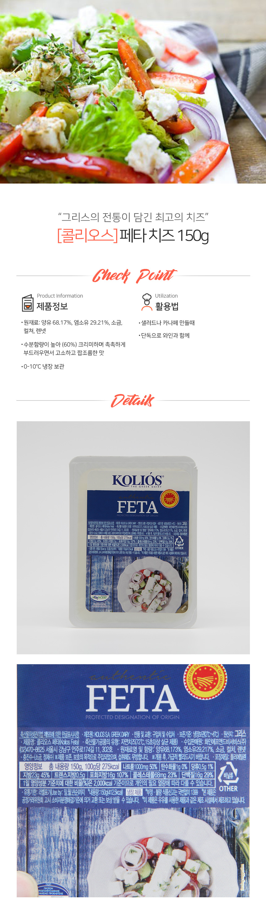 콜리오스 냉장 페타치즈 150g 이미지