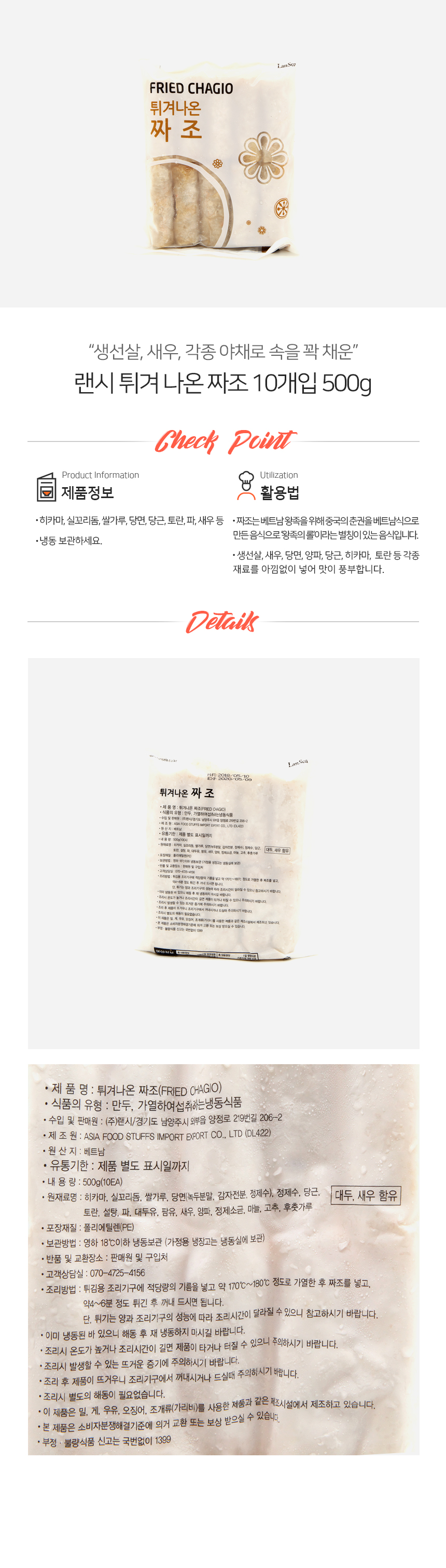랜시 냉동 튀겨나온 짜조 10개입 500g 이미지