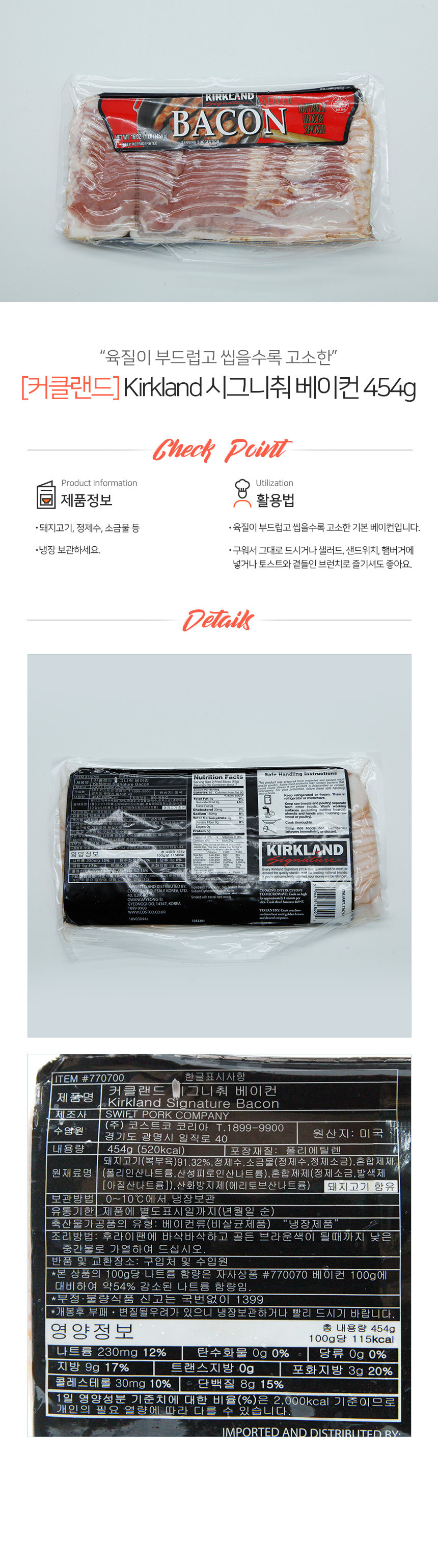 커클랜드시그니처 냉장 저염베이컨 454g 이미지