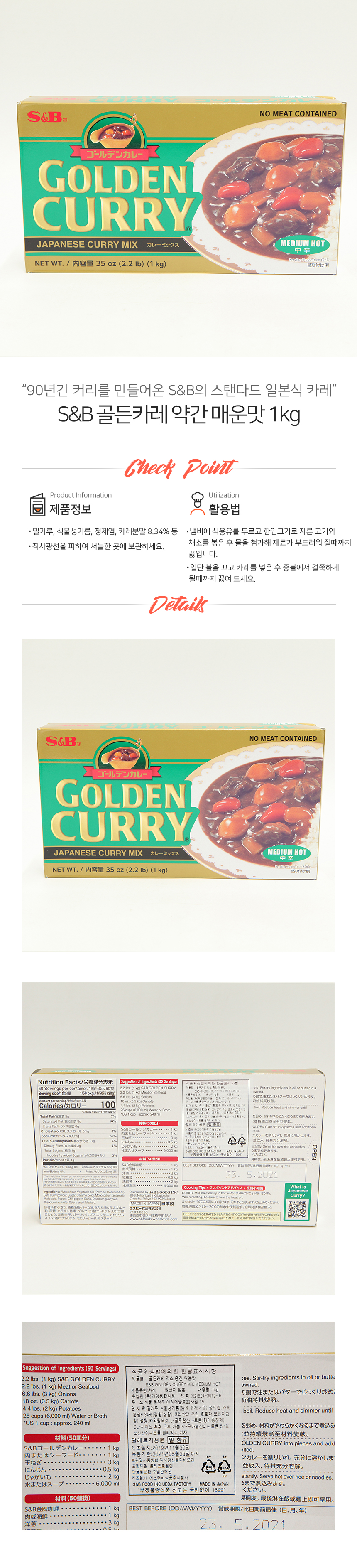 에스앤비 골든카레 중간매운맛 1kg (상온)