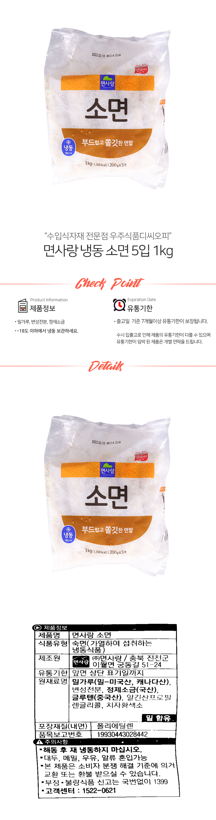 면사랑 냉동 소면 5입 1kg