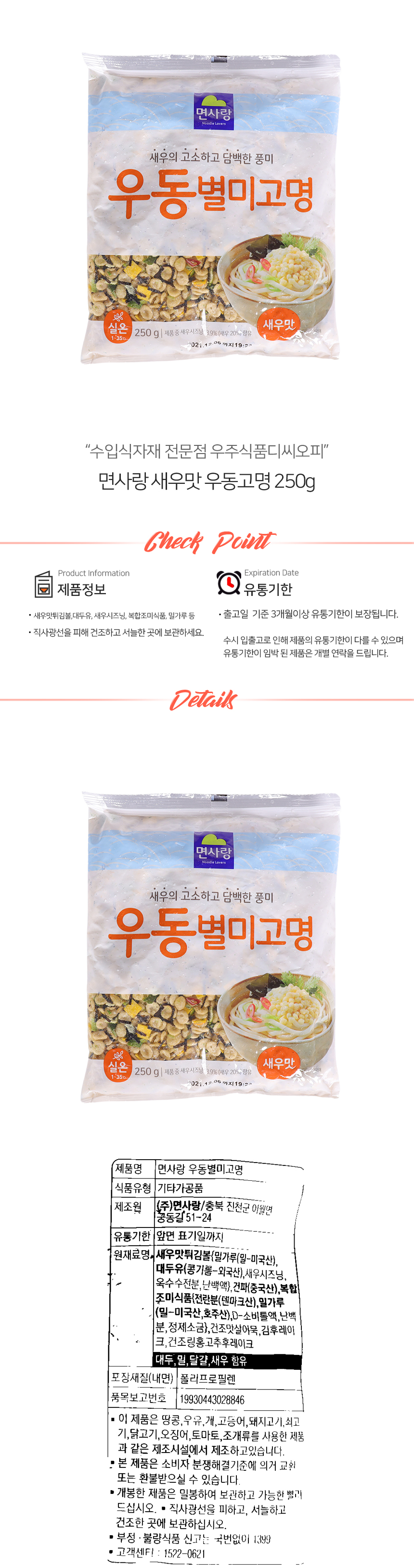 면사랑 새우맛 우동고명 250g (상온)