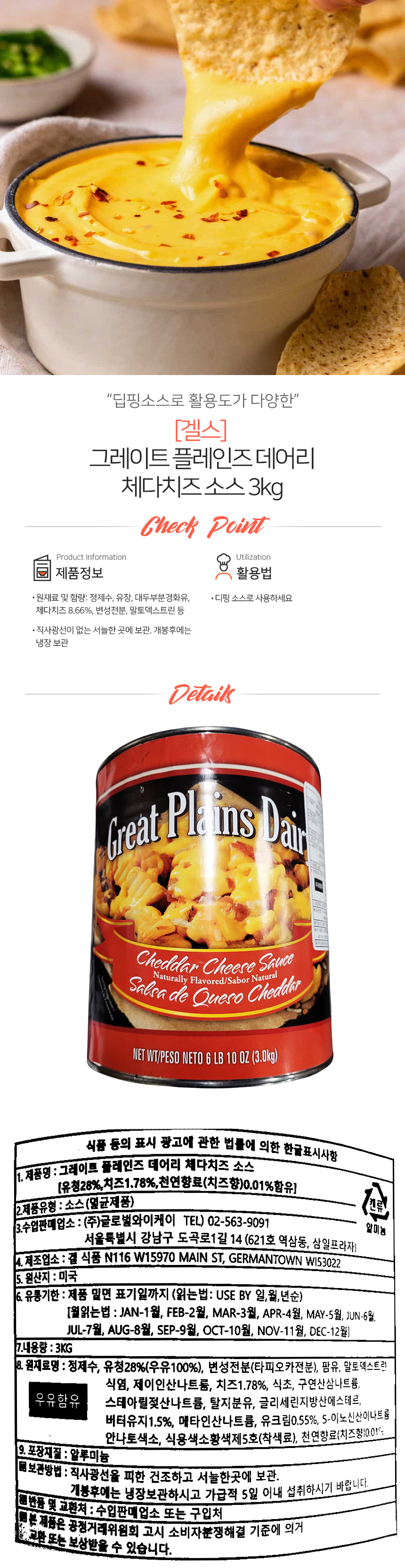 겔스 그레이트 프레인즈 데어리 체다치즈소스 3kg (상온)