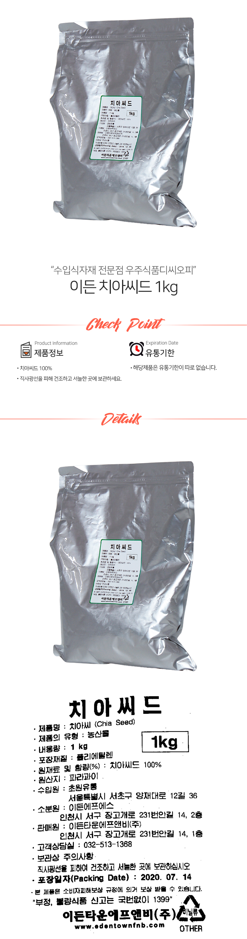이든 치아씨드 1kg (상온) 이미지