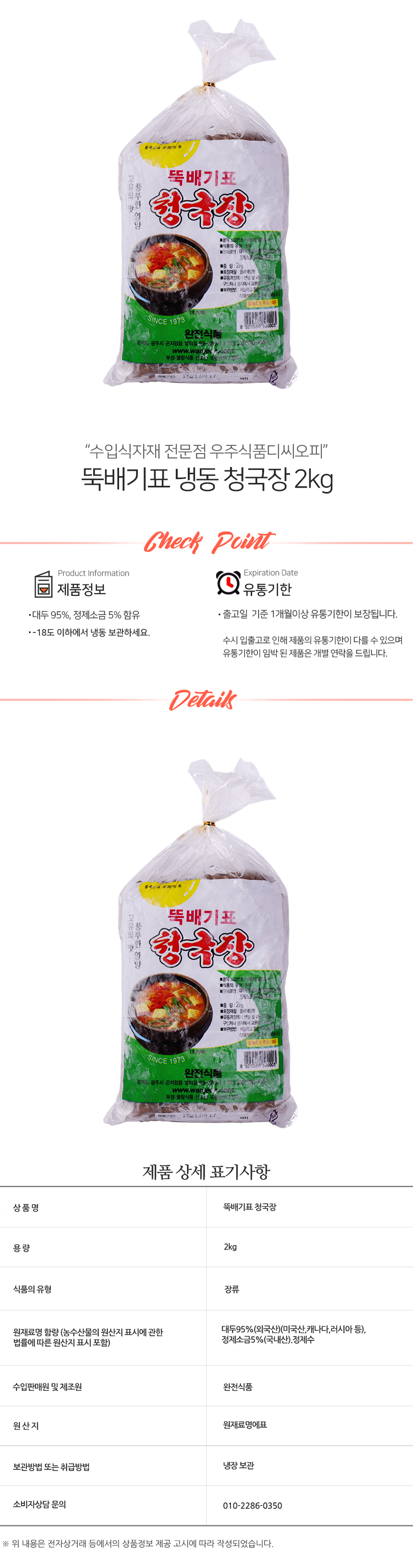 뚝배기표 냉동 청국장 2kg