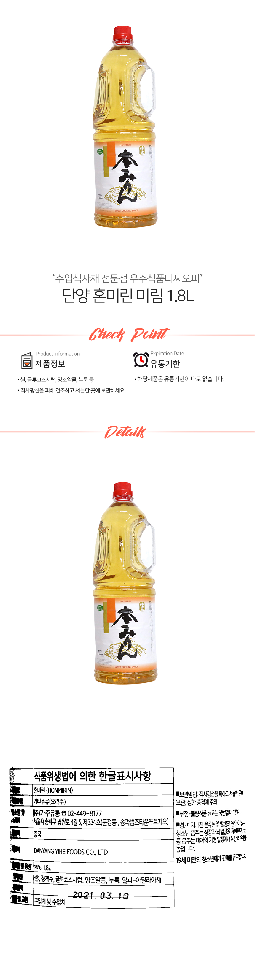 단양 혼미린 미림 1.8L (상온) 이미지