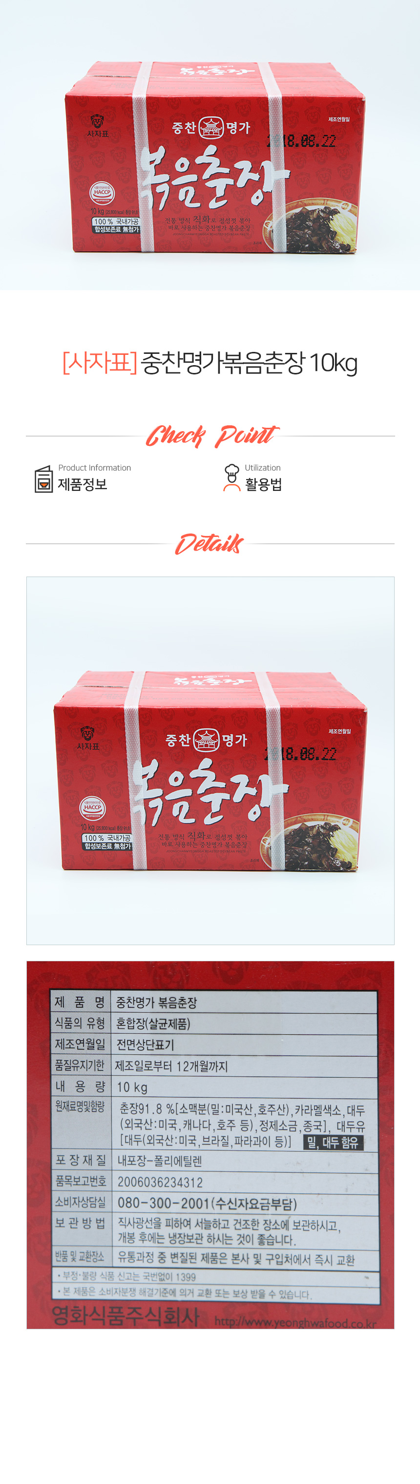 중찬명가 사자표 볶음춘장 10kg (상온)