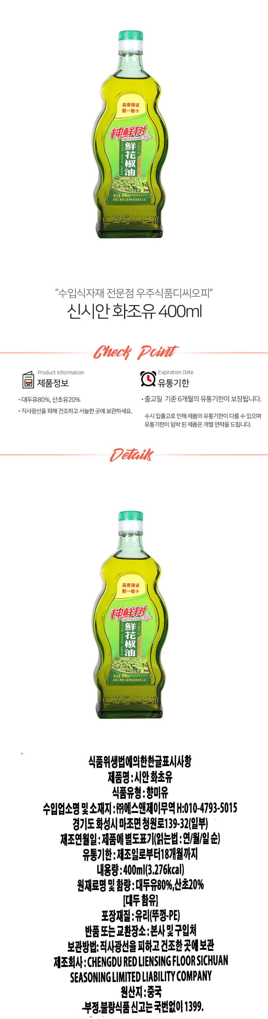 신시안 화조유 400ml (상온) 이미지