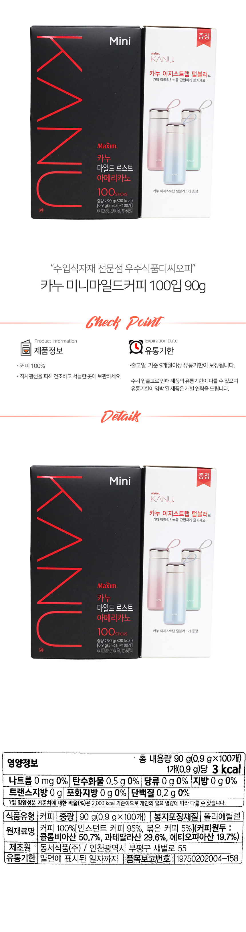 카누 미니마일드커피 100입 90g (상온) 이미지