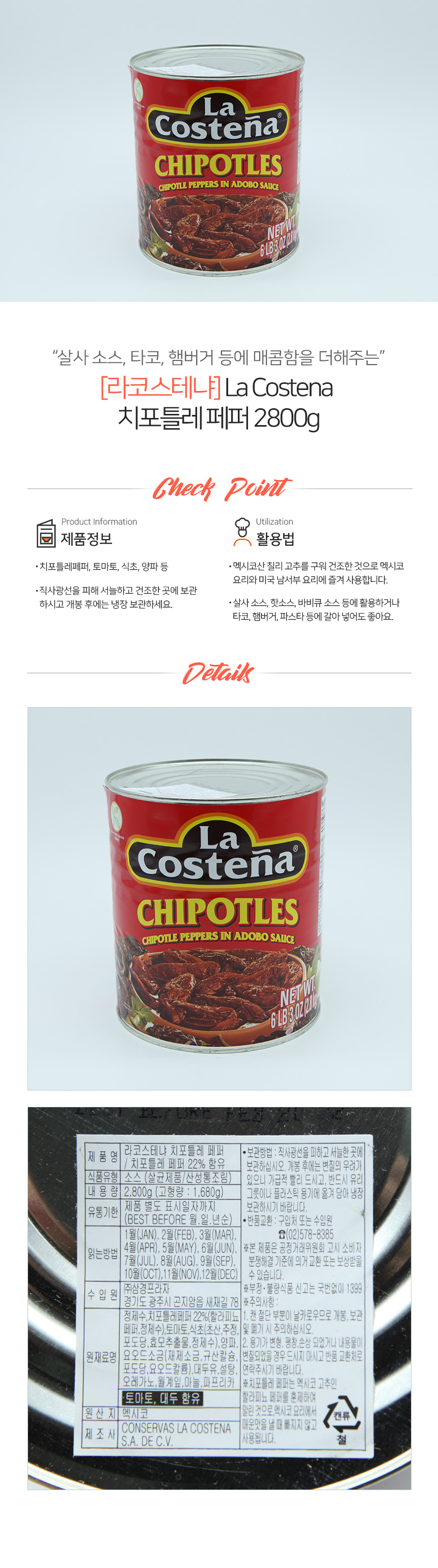 라코스테냐 치포틀레페퍼 치폴레 2.8kg (상온)