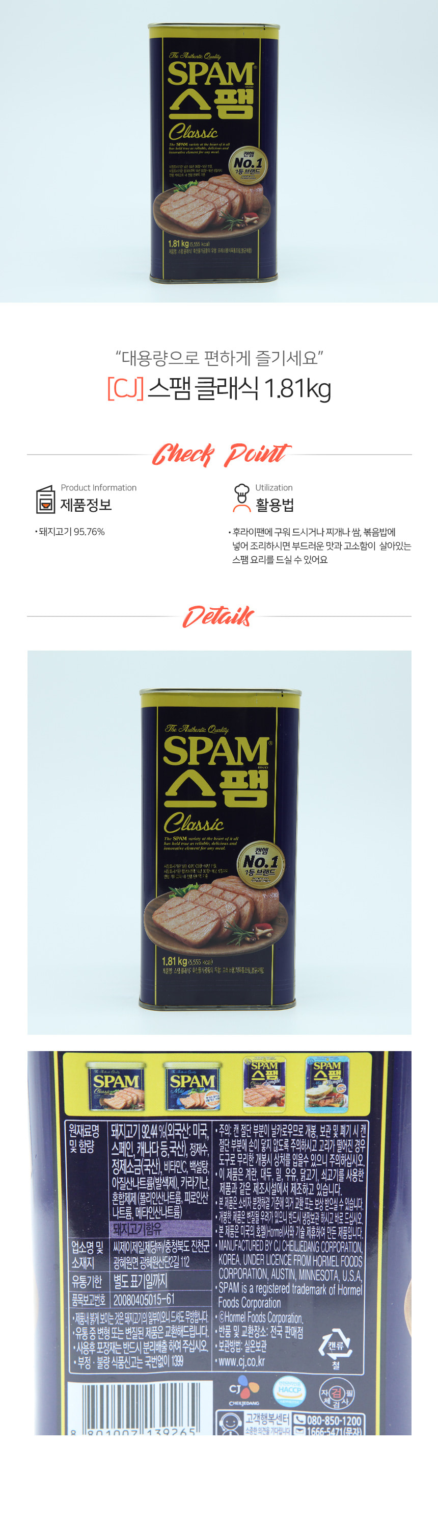 CJ 백설 스팸 클래식 1.81kg (상온)