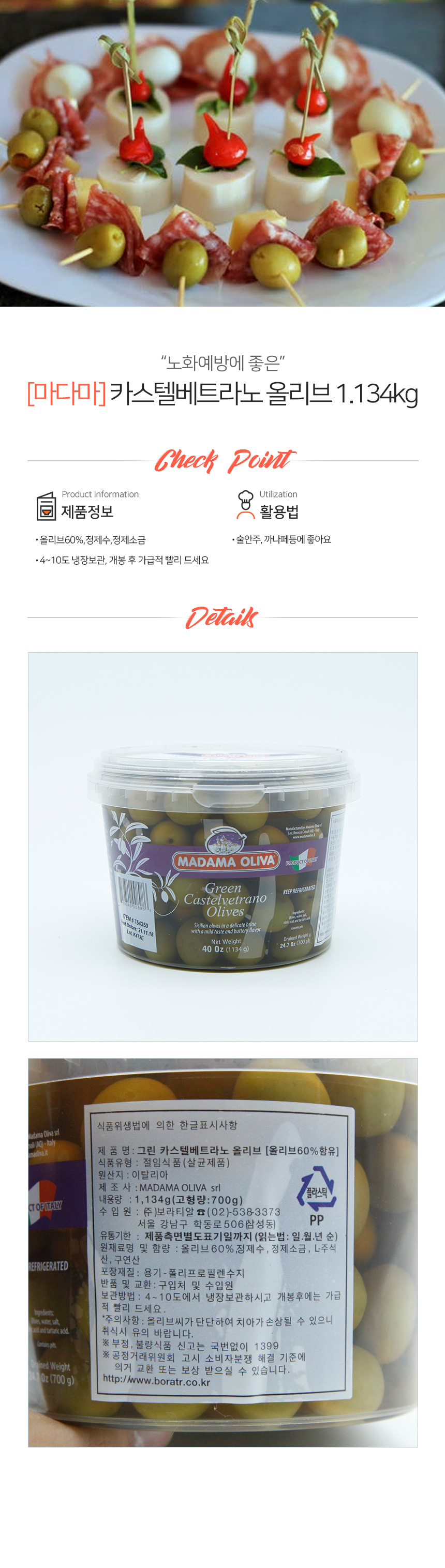 마다마 냉장 카스텔베트라노 그린올리브 1.13kg 이미지